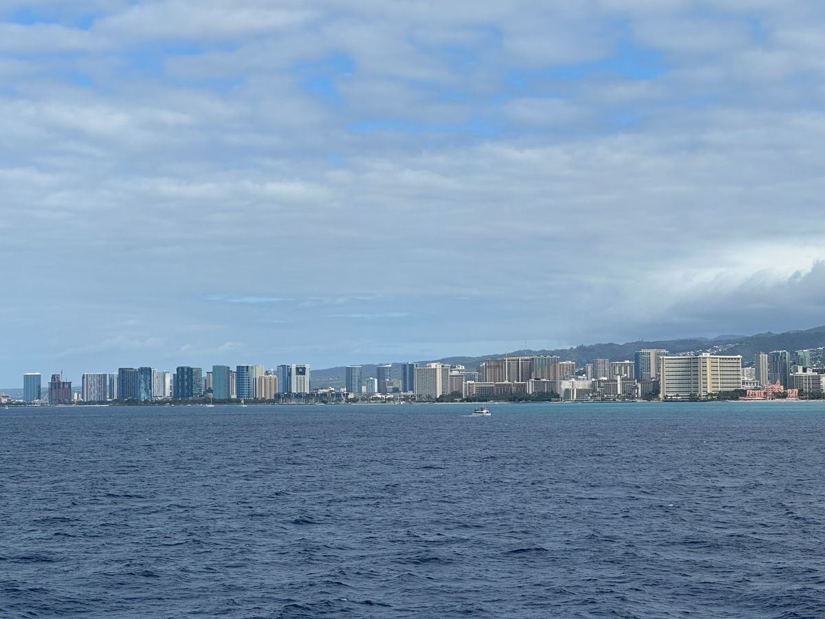 残念ながらクジラは見れませんでしたがワイキキ沖から眺める景色は最高です。帰港途中にドルフィンの群れが船に近づいて楽しませてくれました。