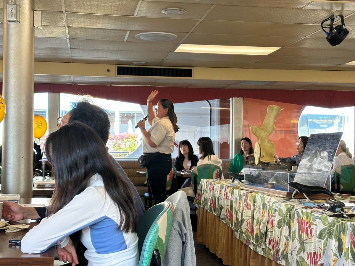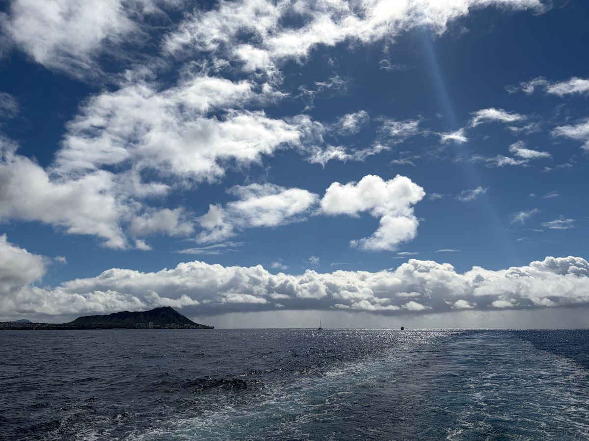 何千頭のザトウクジラが冬のホノルルにやって来る!これは是非参加したいと初めての体験にドキドキワクワクしました。時間通りに出航し、海の上から見るワイキキとダイヤモンドヘッドの絶景に興奮が収まりません。途中、雨雲が掛かり突然スコールになり、寒くもなったりしていましたが、楽しかったです。クジラの姿は一瞬見えました、もっと見たかったが次のチャンスでまたチャレンジします。改善点一つ上げるとすれば、提供されていたコーヒーが熱々のものにしてほしかったです。スタッフはみんな笑顔で良かったです。