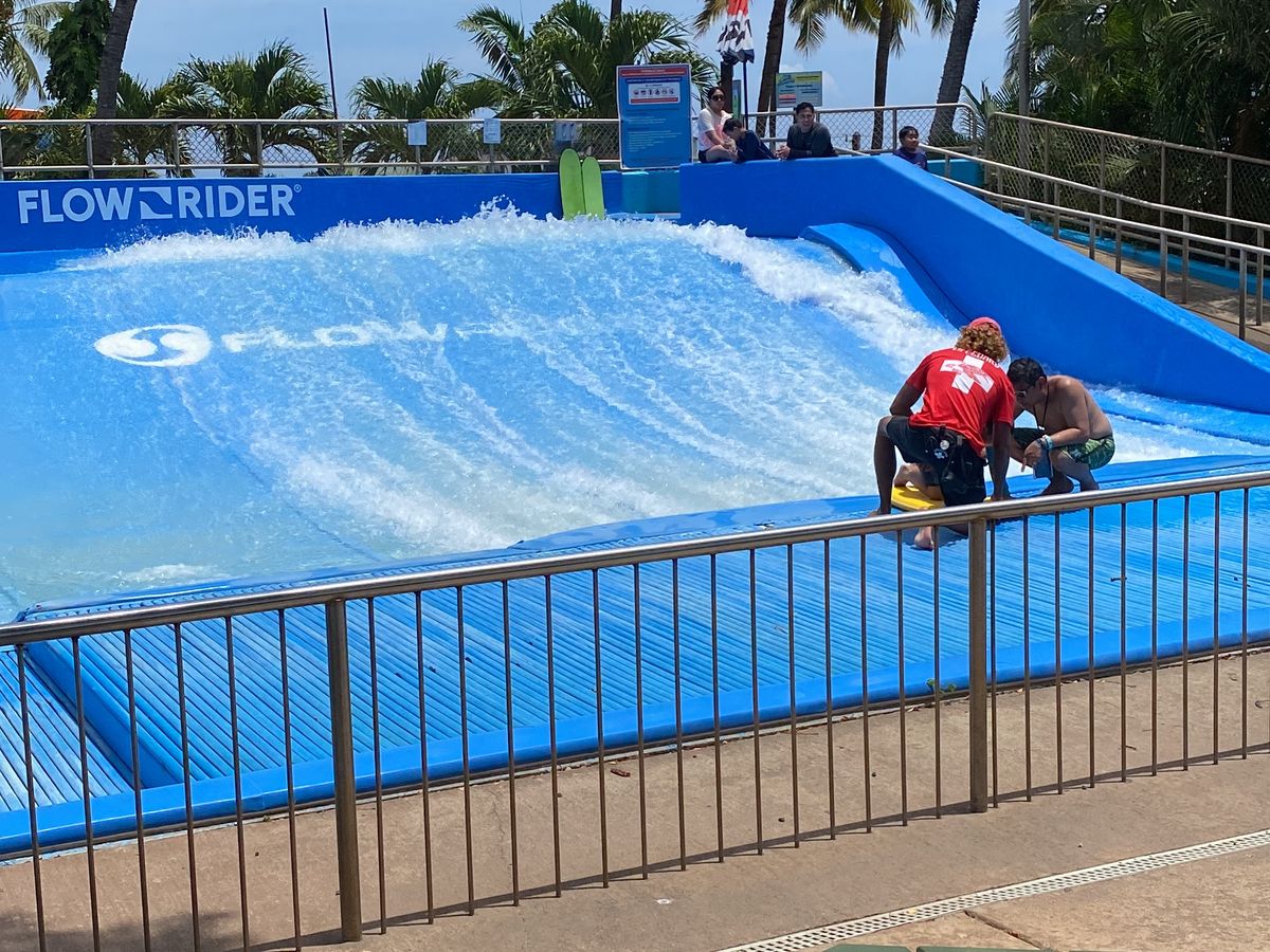 英語がわからなかったのですが日本人の方がとても親切に終始教えてくださり不自由なく楽しむことができました。日本のプールでは見たことのない景色と数々のスリル満点のウォータースライダーがあり絶叫系が好きな私たちにとってとても楽しく過ごせました。また、少し怖いスライダーもありますが優しいスライダーもあるので気軽に挑戦できると思いました。1日じゃ物足りないくらいだったのでまたハワイに旅行に行く時があればぜひ行きたいです。