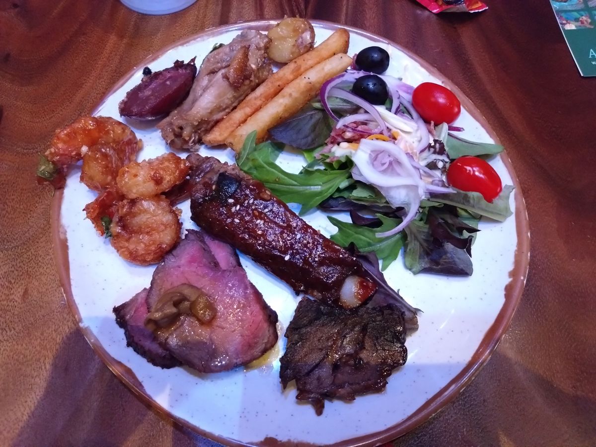 日本語ガイドとレストランの前で別れた後、ブッフェでの夕食で、料理はとてもおいしく、生演奏もあってとても良かったです。