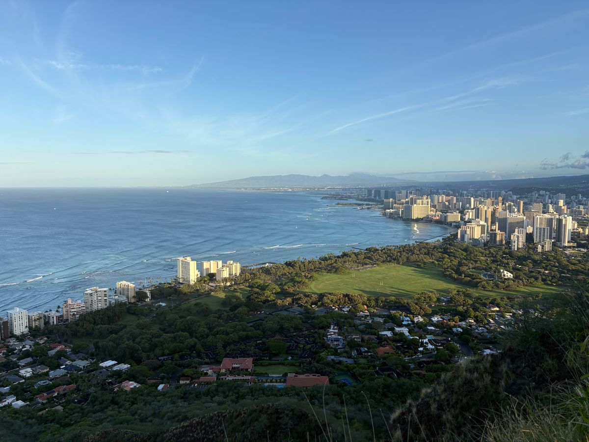 ダイヤモンドヘッドの山頂までの道のりは非常に緩やかで、朝眠い中でも簡単に登ることができました。山頂から見る景色も非常に綺麗でした。