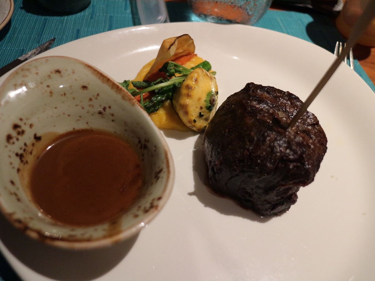 ステーキは柔らかく、最高に美味いです。間違いないと思います。シーフードも美味しいです。