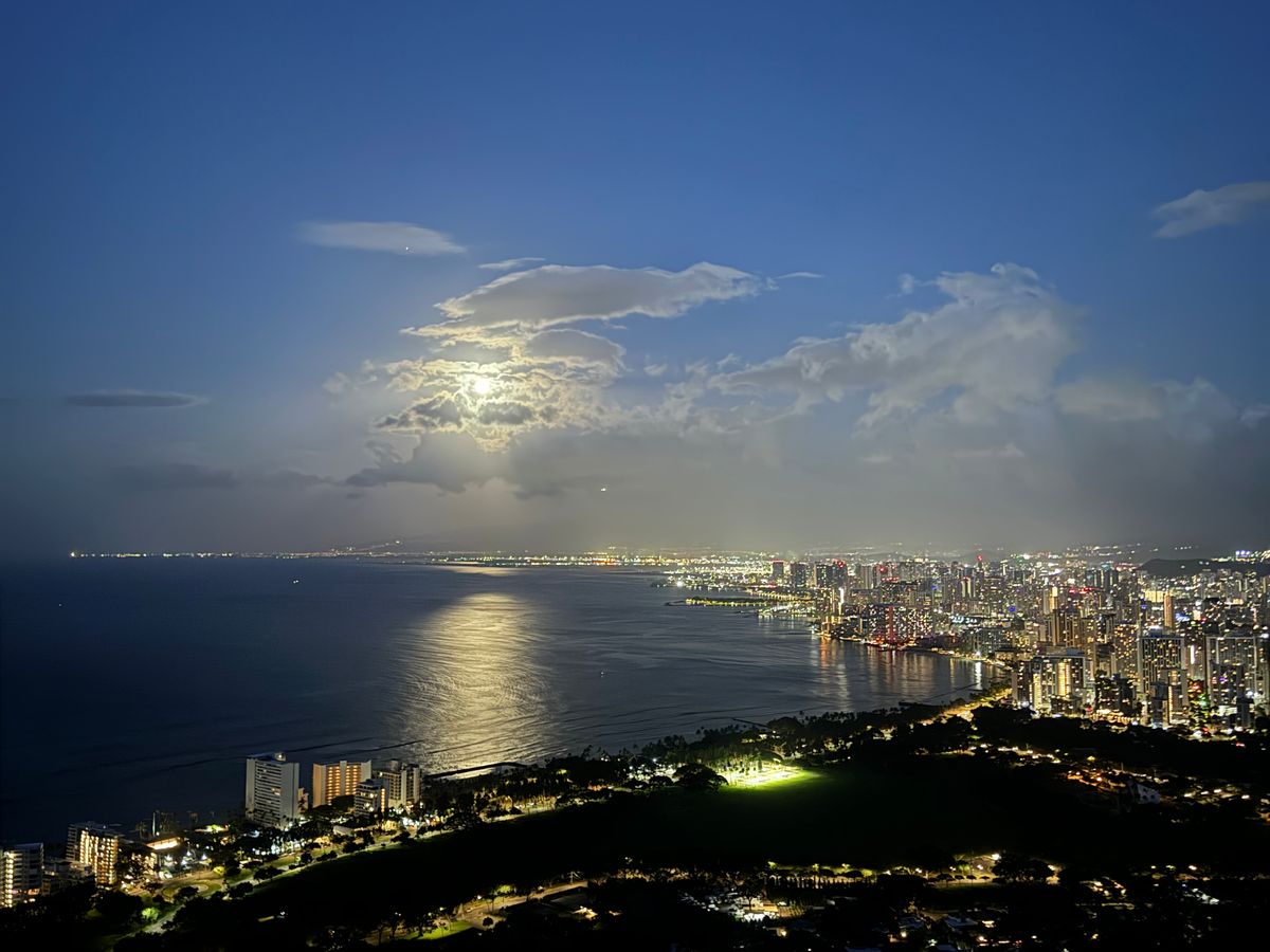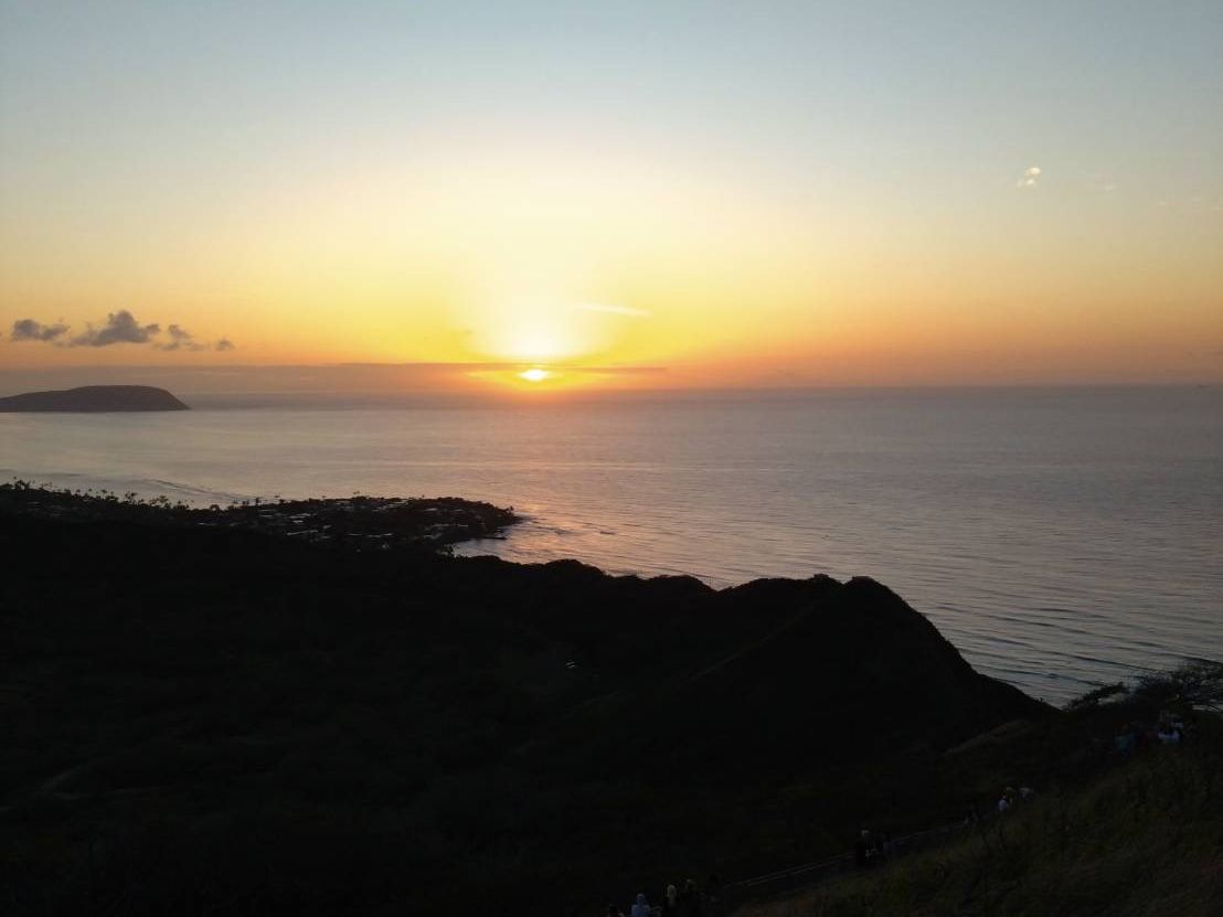 夜から朝に向かう空の色の変化を感じ、疲れも感じ登頂。大好きなダイヤモンドヘッドからの日の出に感動。