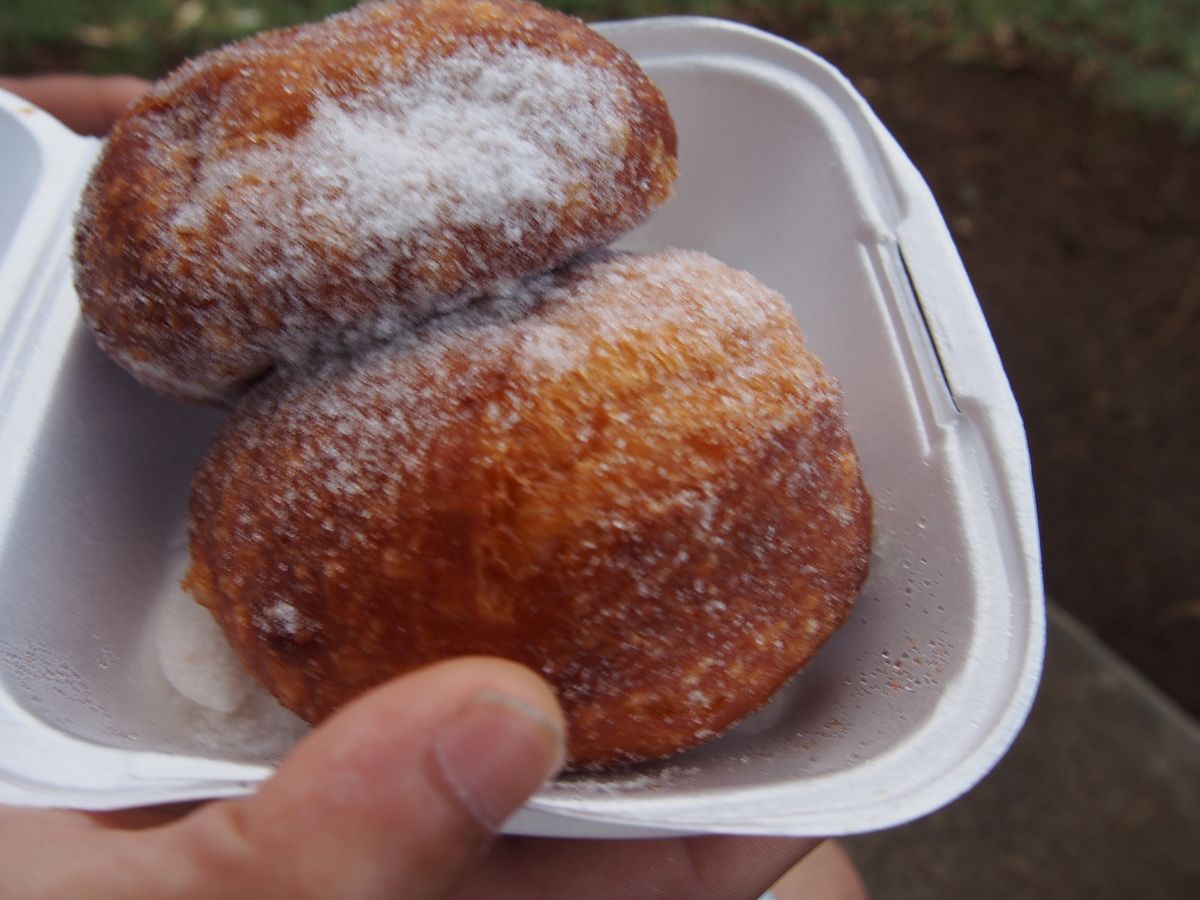 朝食のマラサダが付いているプランでしたが、テイクアウトのマサラダを渡されダイヤモンドヘッドのベンチで食べました。
