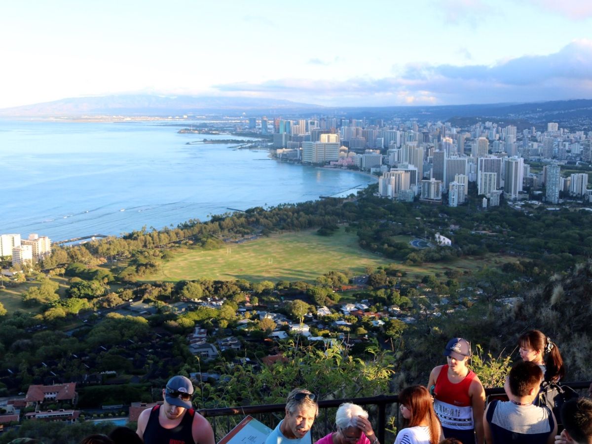 日の出は見れませんでしたが、てっぺんからの風景にオアフ島に来た実感が湧きました。