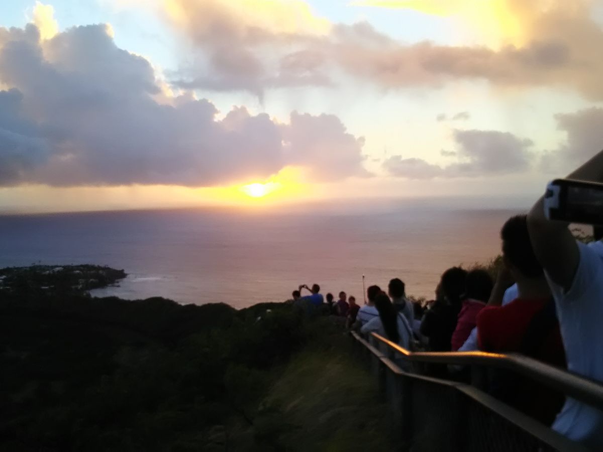 12月12日にホノルルマラソン前日に、完走祈願を兼ねて参加しました。6時半頃開門されてから登山開始となったのですが、真っ暗でした。懐中電灯をかしてもらえたので良かったです。夜中に大雨が降っているようで、足場が滑りやすかったり大きな水溜まりがあるので、注意が必要でした。