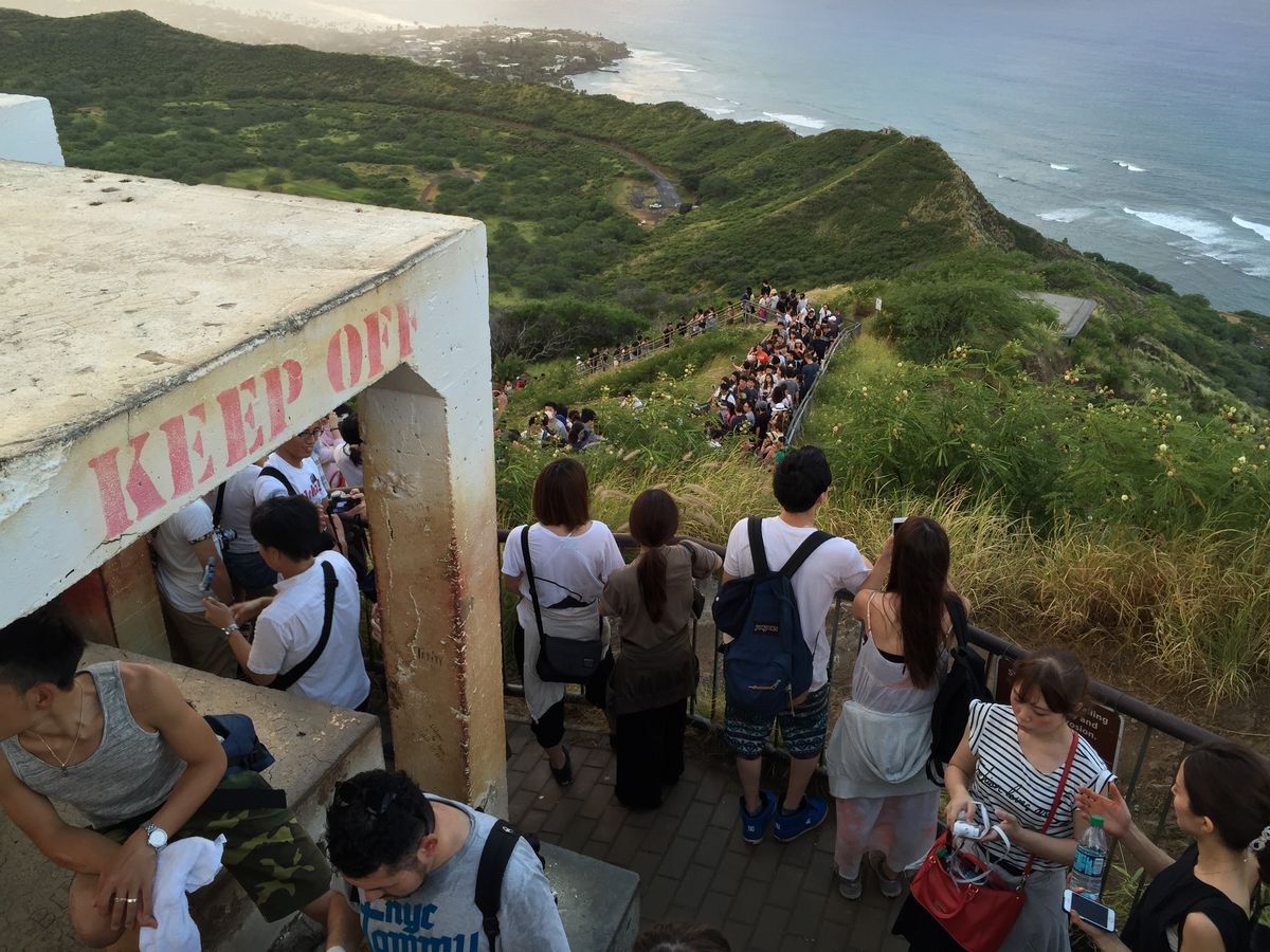 想像をはるかに超える人数が同時に登るので大混雑でした。山登りというよりは行列に並んでいるような感じ!ただ景色は綺麗でした!