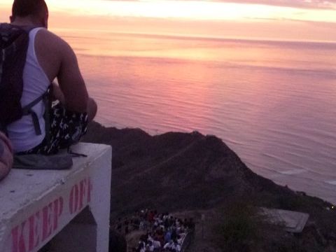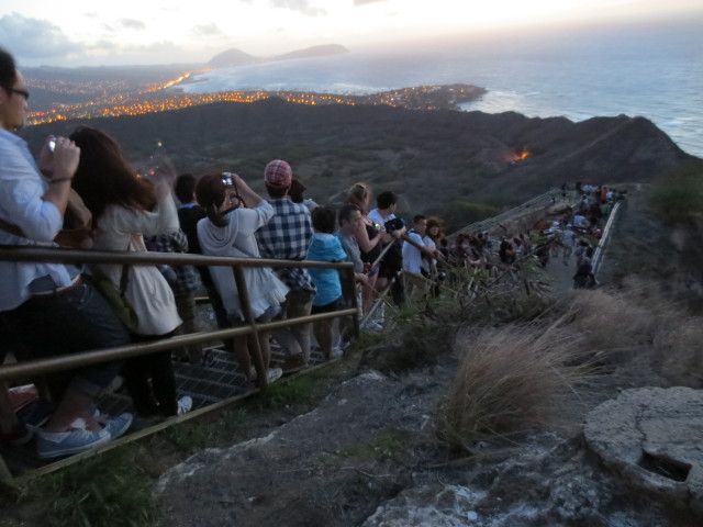 まだあたりが真っ暗なAM5時半すぎにピックアップしてくださって、ダイヤモンドヘッドに登りました。懐中電灯をグループに一つ貸していただいたおかげで頂上までの道を歩くことができました。