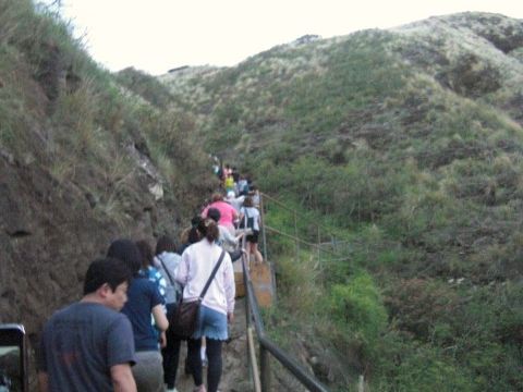 バンに乗ってダイアモンドヘッドに移動。入場してハイキングのはじまり。体力には自信があったのですが階段が思いのほかキツくヘトヘトでした。