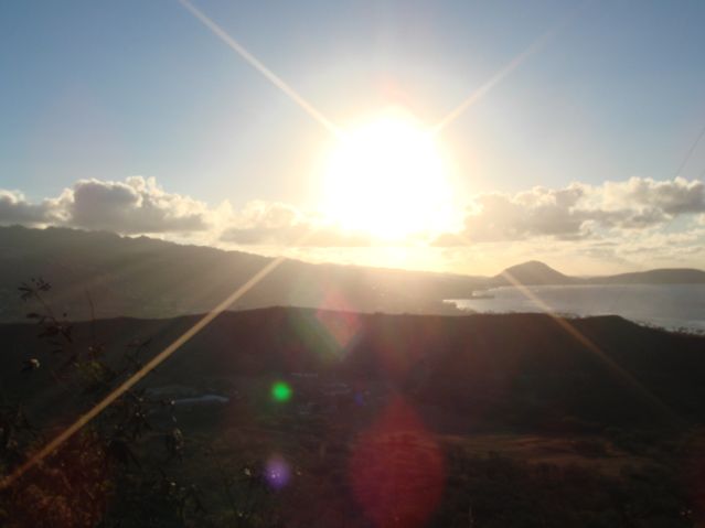朝日は、ダイアモンドヘッドの頂上ではなく、パーキングのような広場で見ることになります。(行ったのは6月です。)