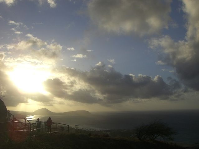 最初は、徐々に登ってくる朝日に感動☆すごくキレイでした。→それからダイヤモンドヘッド登頂に・・・登りきれるかな?と、ちょっと不安で、途中もカナリ疲れ気味でしたが山頂まできたら疲れなんて忘れるくらい爽快でした。