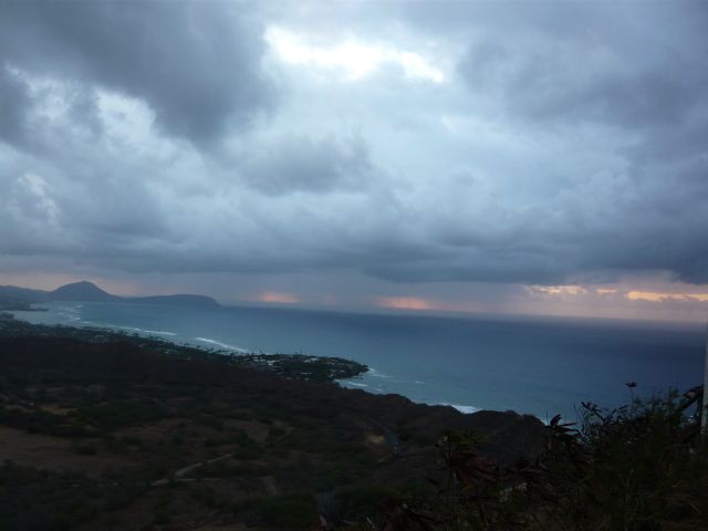 当日の天候が悪く、ダイヤモンドヘッドからの朝日を見ることができなかったのが心残りですが、頂上からは360度島を眺めることができ、すがすがしい気分でした。登りは予想以上に後半がハードだったので(特に階段が・・・)朝からよい運動になりました。。次回は母と来ようと思っていましたが、普段運動不足の母(57)には少しきついかなと思いました・・・。