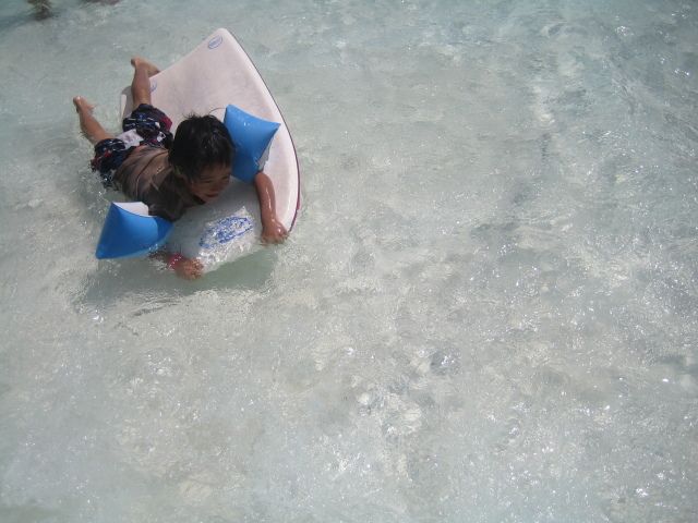 ハリケーン・ベイの波もかなりなもので、ブギーボードの練習にもってこいです。