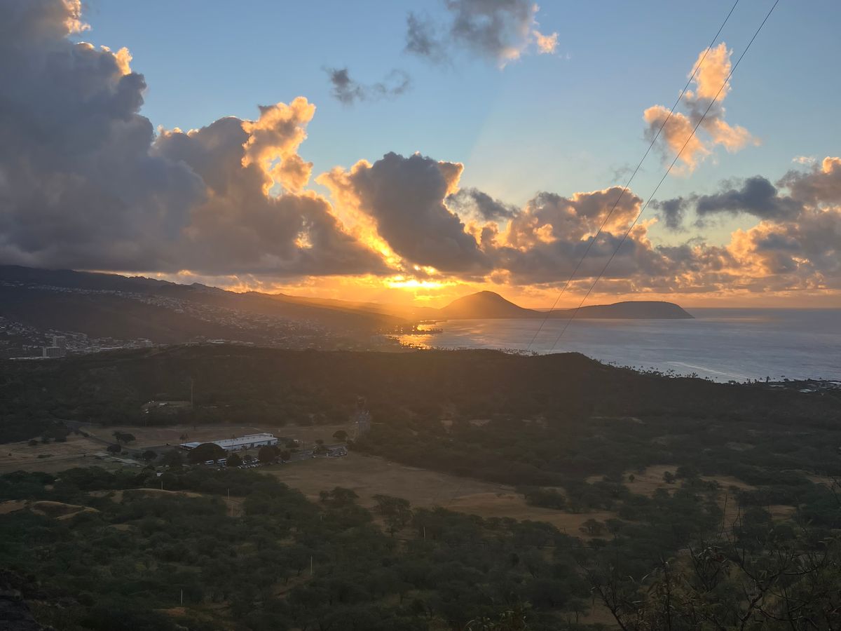 ダイヤモンドヘッド日の出ハイキングには、小学生2名を含む家族5人で参加しました。普段あまり運動しない私には、足元の悪い道や階段はきついとかもありましたが、景色は最高でした。