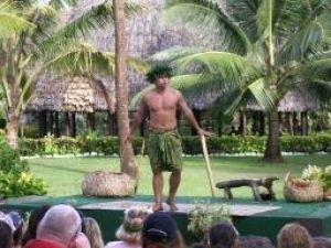 参加したスタンダードは、日本人20人くらいの単位でガイドさんに案内していただけるツアーでしたが、ガイドさんからビュッフェの集合時間を聞き、2人だけで園内を楽しませていただくことができました。そのお陰でカヌーショーをはじめほとんどの村をまわることができました。中でもお勧めは、タヒチとサモアです。タヒチのリズムとダンスは鳥肌がたつくらい興奮しました。またサモアは添付の写真の人のパフォーマンスが面白く会場は爆笑の渦でした。