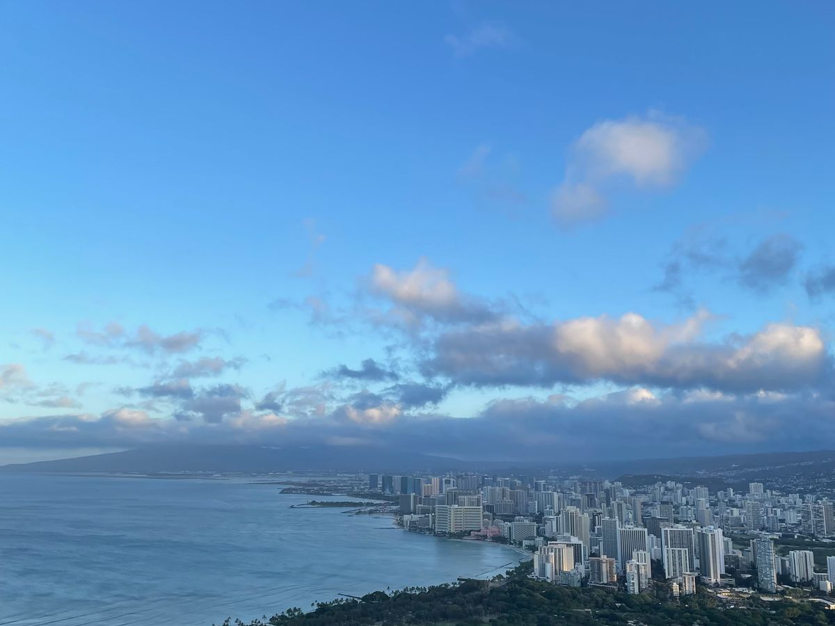山頂からの朝日も綺麗だが、ハワイの海と街がそれ以上に綺麗で壮大でした!
