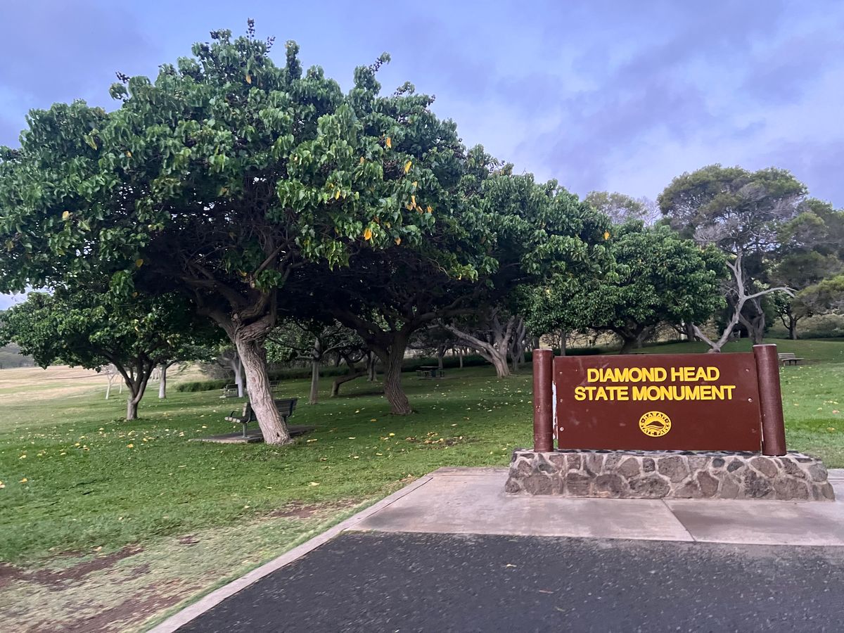 日の出を見るのだから早く出発するんだと思っていましたが、ダイヤモンドヘッドの駐車場に入るために、車が数台列を作っており駐車場の手前の広場?のようなところで少し待機しました。