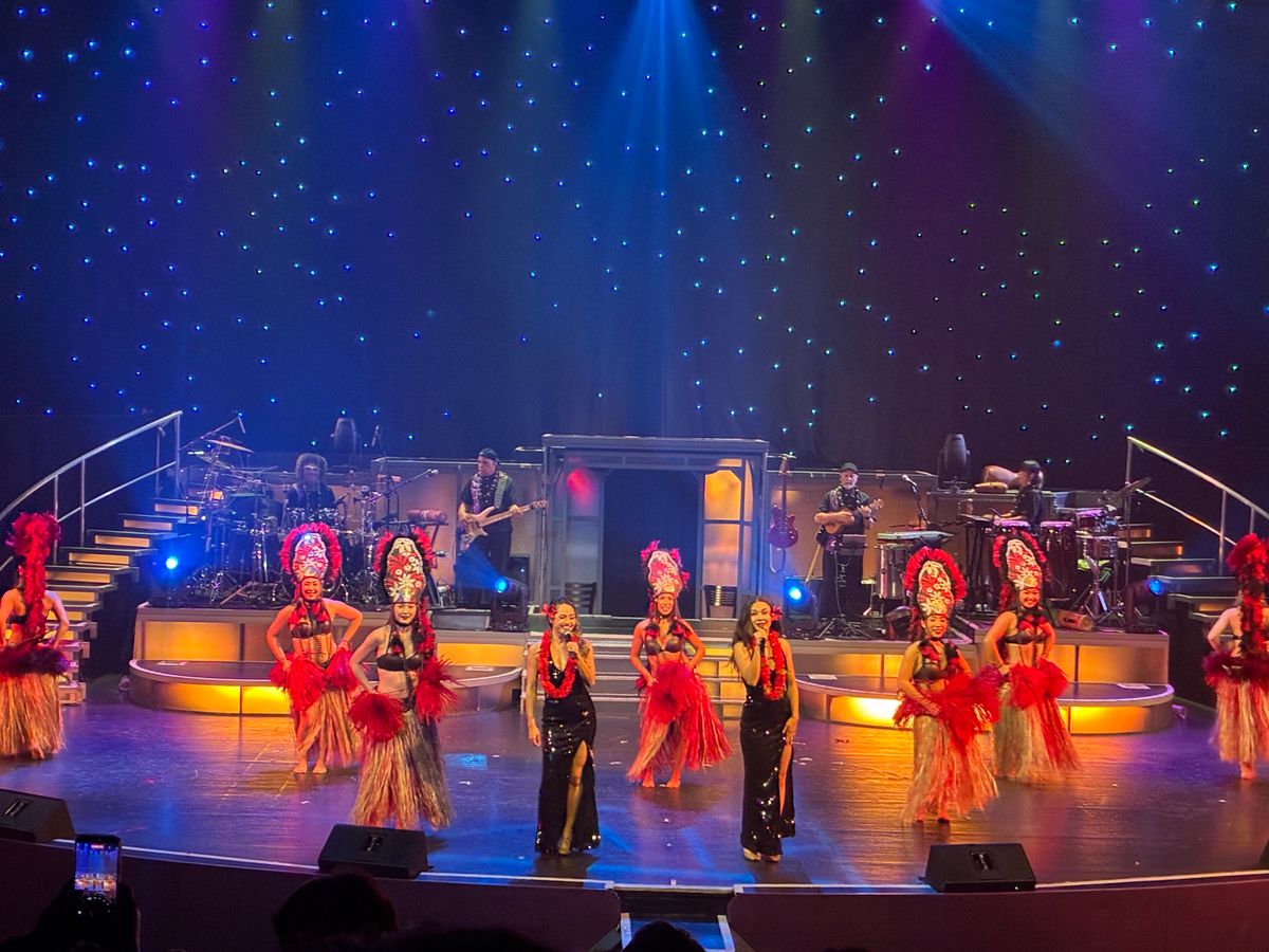 ステージではフラやタヒチアンダンスも見れたしエルビスプレスリーとマイケルジャクソンがすごーく似てたし曲やダンスも懐かしいし時差ぼけで眠かったにも関わらず最高のパフォーマンスを見せていただきました。