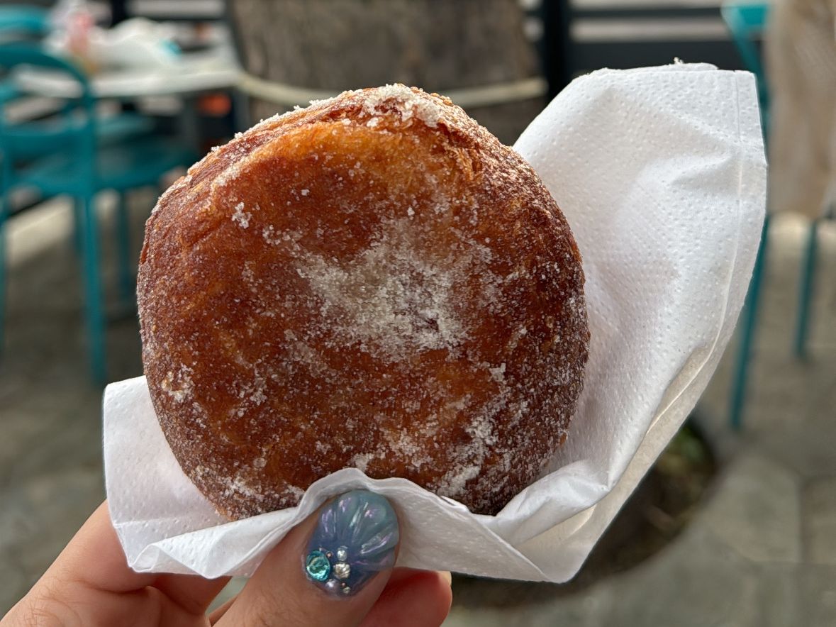 砂糖たっぷりの揚げパンです。周辺にはマラサダを狙う小鳥がいますので、注意してください。かわいいんですけどね。
