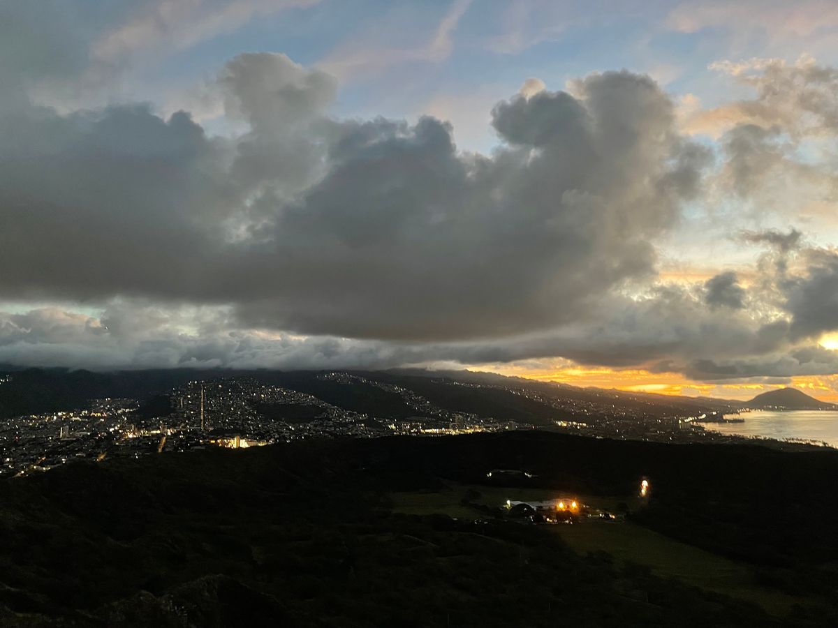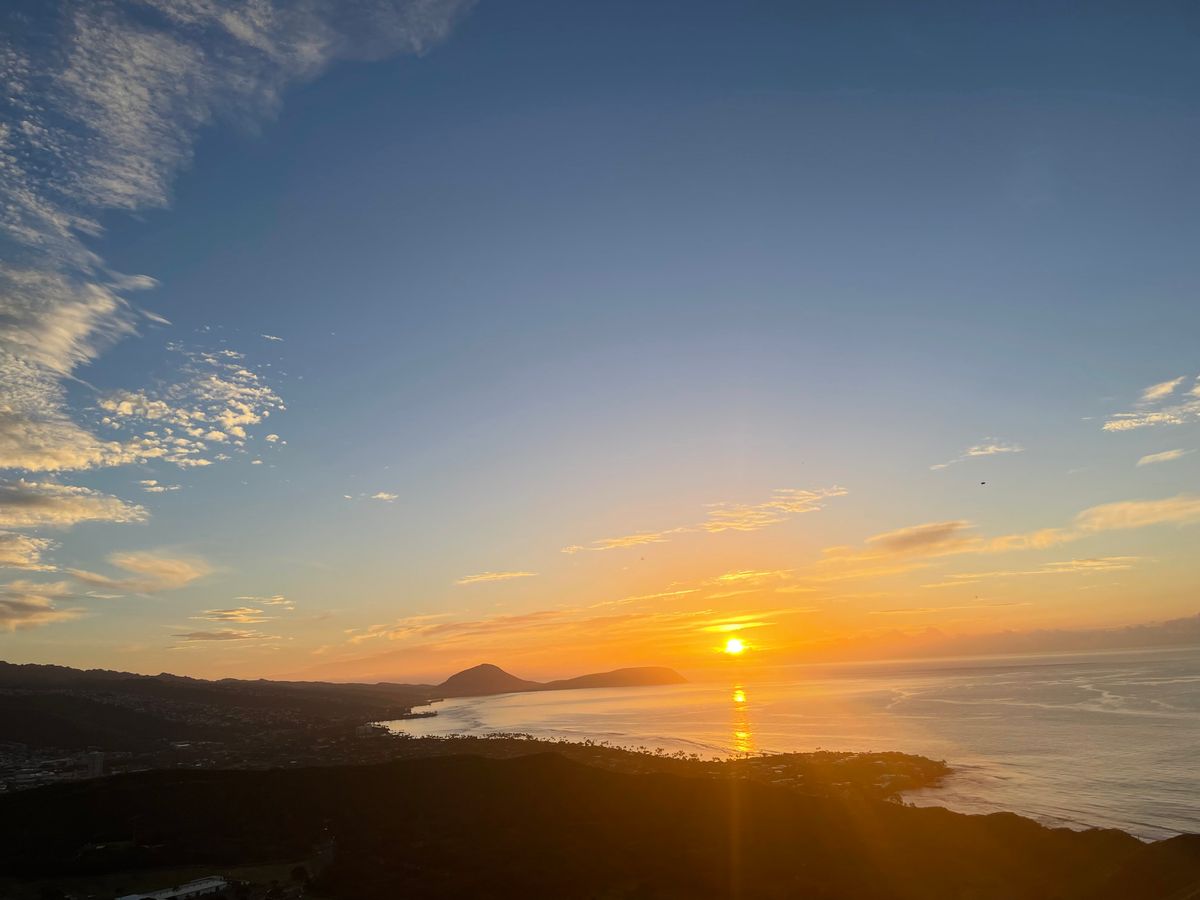50歳になる私ですが、正直、余裕かなと思っていましたが、意外と体力を消耗しました。コロナで体力が無くなっているのは自覚してましたが、それ以上に身体にきました。が、朝の気持ち良い風や朝日を崇められた事は、それ以上に感動しました。山頂(ほぼ)から見下ろす景色はとても美しく、すれ違う道での会話も楽しめました。下山後に頂いたマラサダも昔の揚げパンを思い出しました。