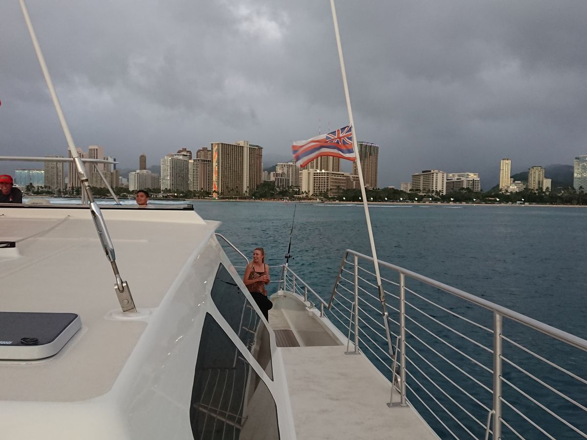 毎回ハワイに来た時はディナークルーズを申し込んでいたのですが、正直小さい船(ボート?)でびっくりして、ディナーもお弁当なのがびっくりしました。