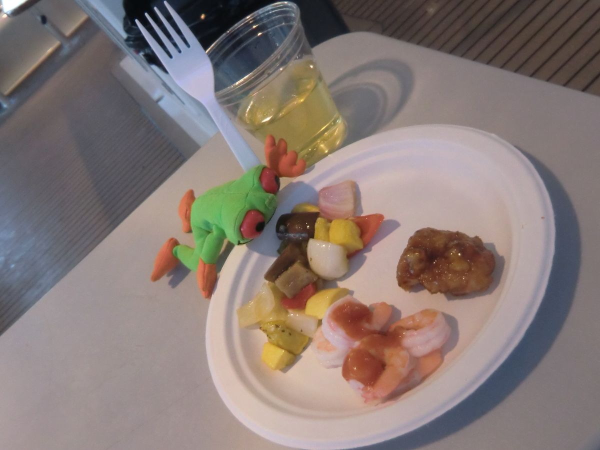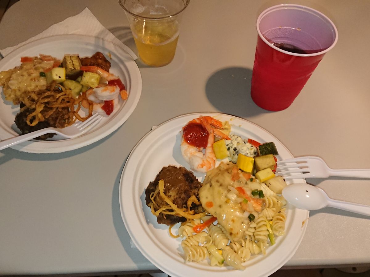 今回、日本人の参加は我々の4人グループだけでした。日本語は全く通じません。飲み物は1杯無料ですが、8ドル払うとフリードリンクになります。食事はビュッフェスタイルで、早めに取らないとなくなります。