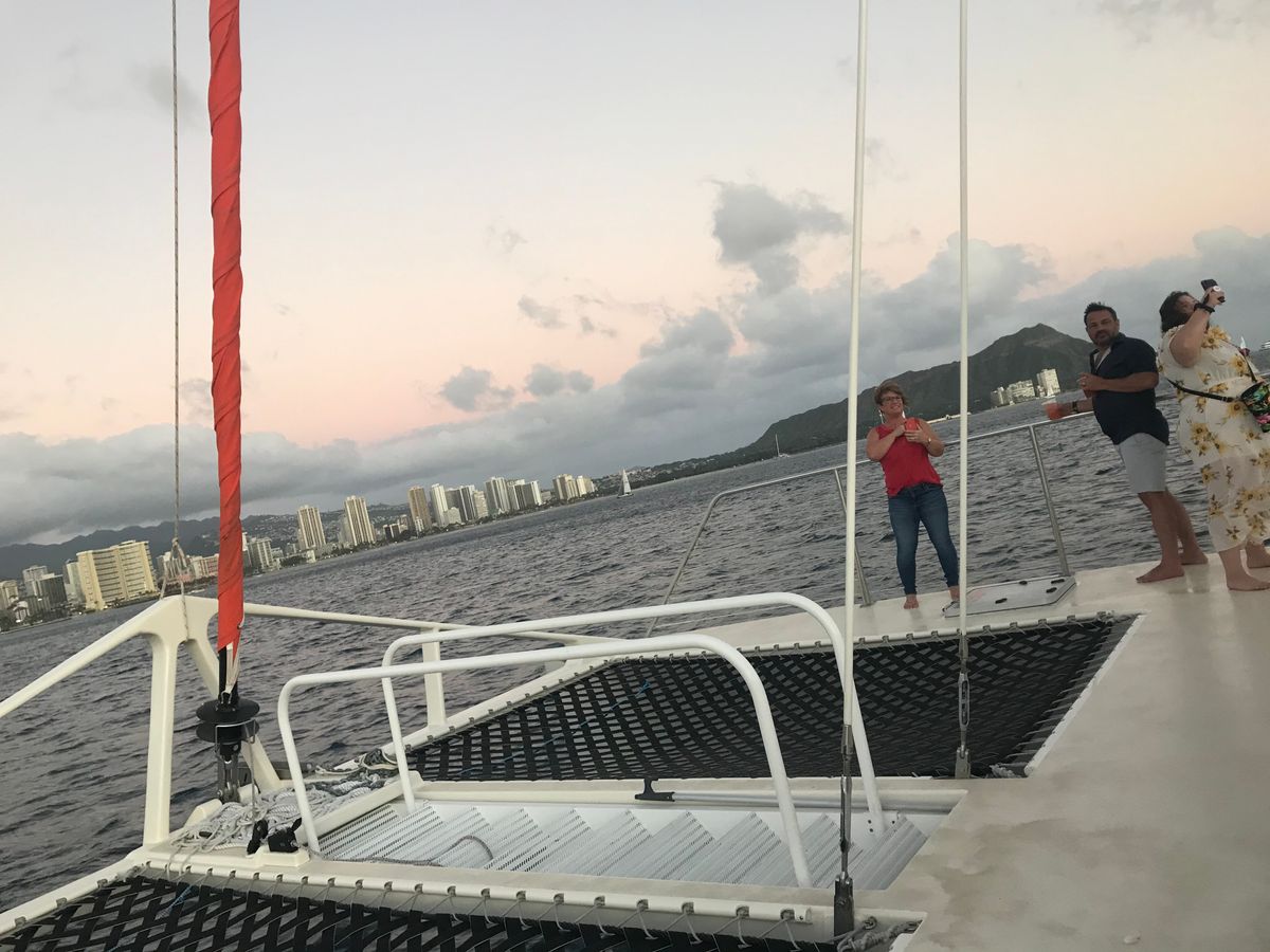 素晴らしい旅行でした。クルーは素晴らしかったです。彼らは楽しくて、面白くて、助けてくれて、気配りがあり、アロハスピリットに満ちています。食事は…グルメではありませんでしたが、大人向けの飲み物がそれを補ってくれました!