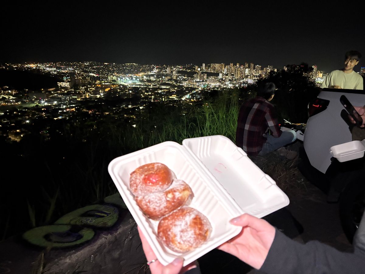 夜景と共に食べるマラサダは絶品で、ディナー後でも余裕で完食でした。