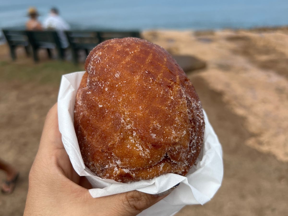 マラサダはワイケレで買って頂き、記念写真を撮って、近くの海に移動して海を見ながら頂きました。