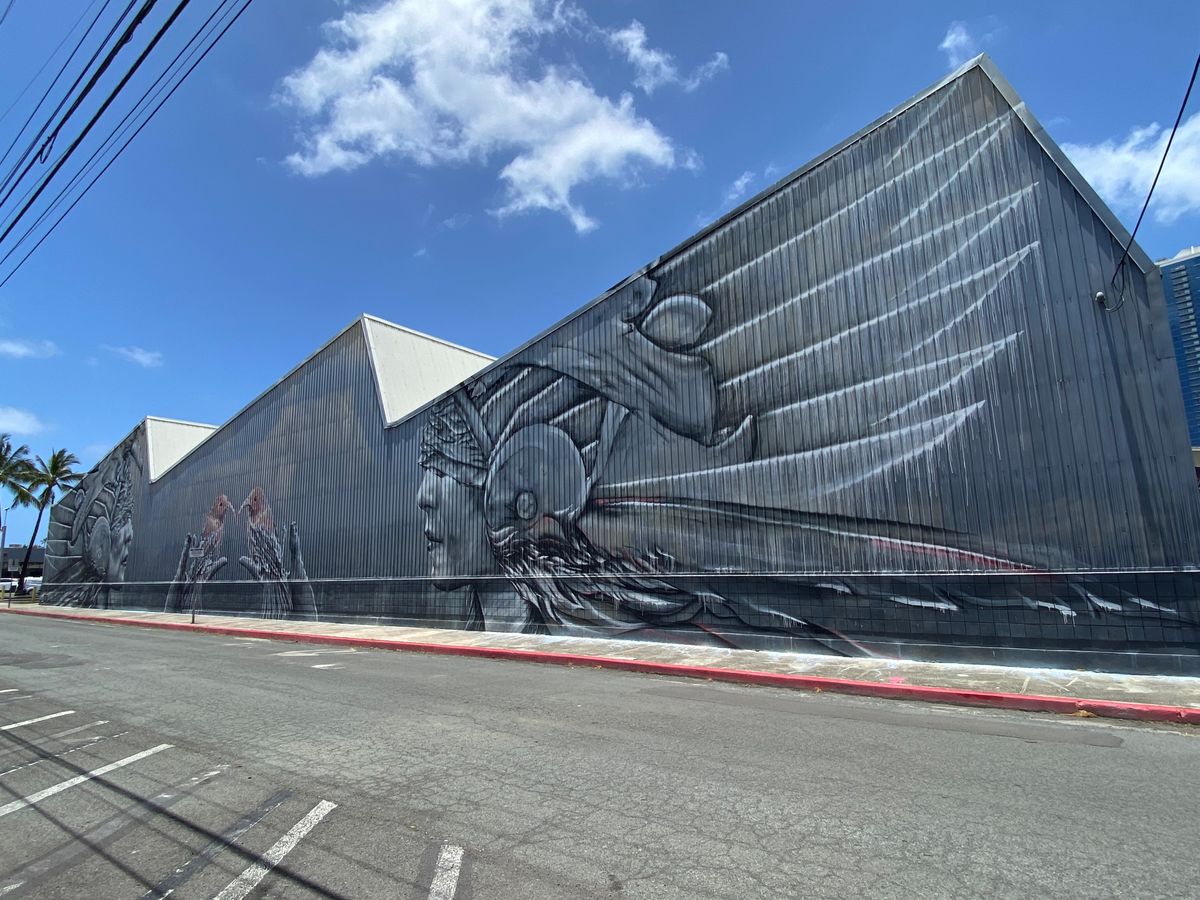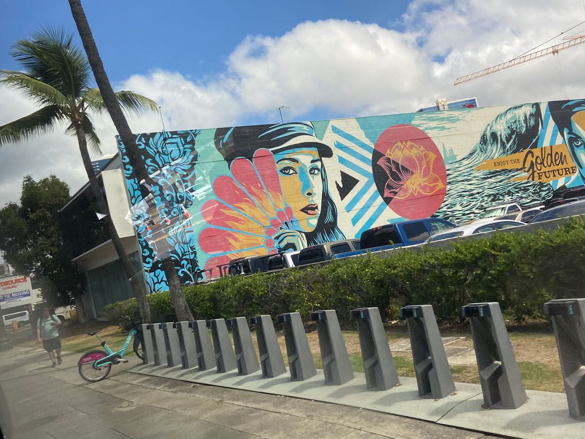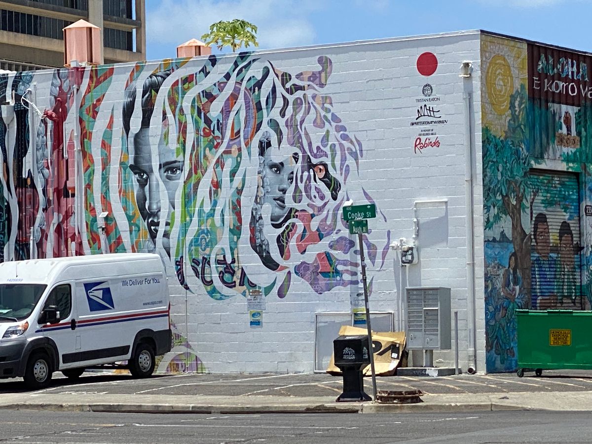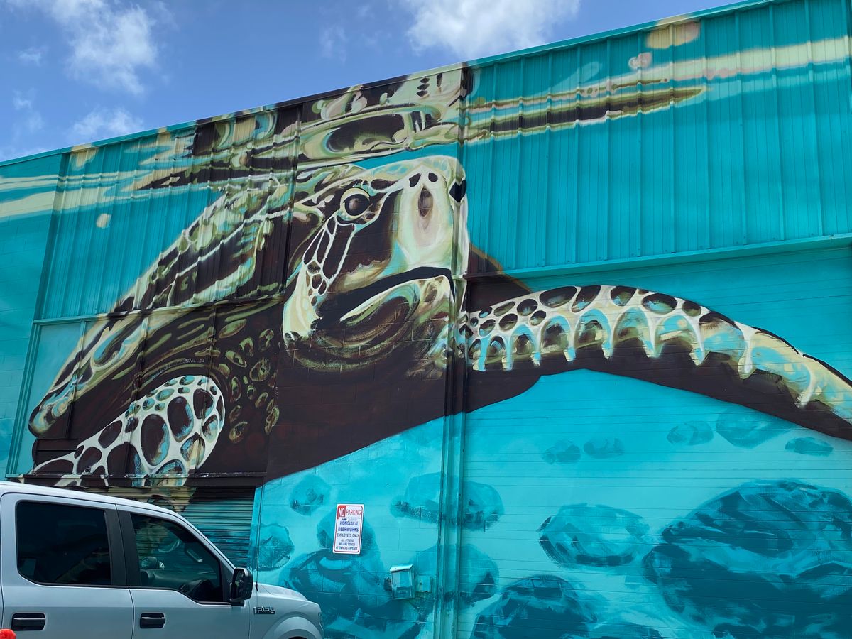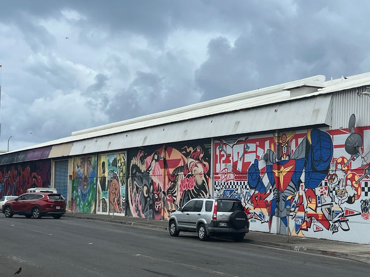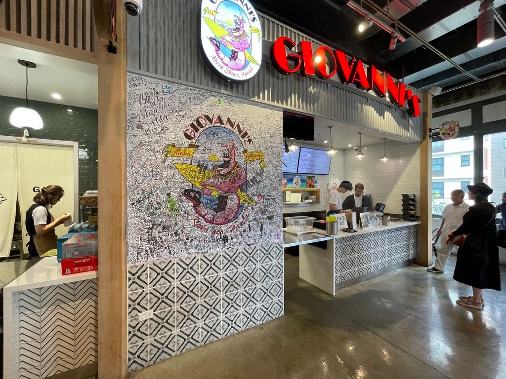 30分くらいで下山した後ツアーはカカアコ地区に向かい、フリータイムを楽しみました。ウォールアートを見て、美味しいプレートランチを食べて。そうそう、ハレイワのジョバンニが出店していました。