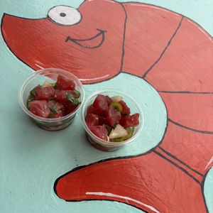 日本人のスタッフさんだったので、質問するといろいろなことを教えてくださいました。試食も含めて常に食べていたツアーだった気がしますが、アヒポキも手のひらサイズの入れ物で食べやすく、マグロが苦手な息子のために、そのお店で有名なバター餅に変更してくれました。ガーリックシュリンプも美味しく、並ばずに食べられるのはラッキーでした。ただ、時間的にタイトなため、ハワイに到着した翌日にツアーを入れていたこともあり、ウトウトしながら次のところにすぐ着くような感じでした。ラム酒のお店は、今回のツアーでは試飲する方はいませんでしたが、試飲する方がいるようであれば子どもはかなり退屈だったと思います。また、他の旅行会社からのツアー申し込みの方はチップが含まれていますと言われ、同じツアーなのにサイトによって金額が若干異なるのはそういうことだったのかと気付かされました。バスを降りるときに私たちのグループだけチップを渡しました。
