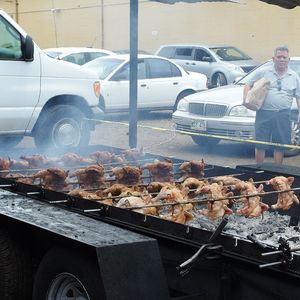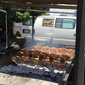 土曜限定のフリフリチキン、ガーリックシュリンプ、ステーキのランチボックスを購入して家族でシェアしていただきました。フリフリチキンはボリュームがあったので半分持ち帰りました。100均でかったクーラーバックに凍らせた飲み水を入れて持ちあるいていたのでちょうどよかった。