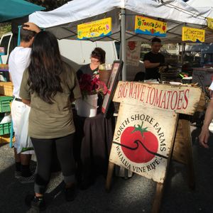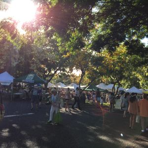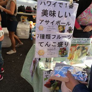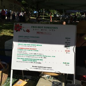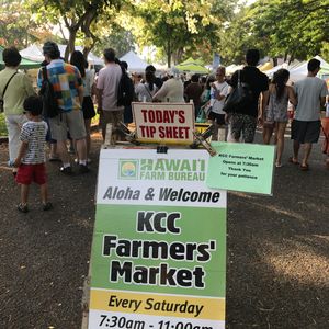 土曜のKCC朝市では人気というトマトのフライやアワビを食べてみましたがとてもおいしかったですよ。色々な食べ物や野菜などたくさんあってハチミツなども買えます。