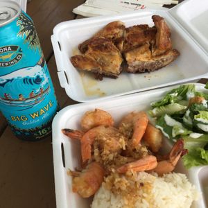 一番感動したのはなくなったガーリックシュリンプのお店!マッキーズにずっと行きたかったんですが、なくなってしまったのですごく食べてみたかったんです(p_-)あの味を受け継ぐお店に連れていってもらったのでほんとに感激しました!ガーリックシュリンプ、ここが一番気に入りました!タレがご飯にしみててご飯が進みます!一緒に食べようと買ったフリフリチキンも食べきれないと思い2人で半分にしたのですが、1羽分頼めばよかったと思える美味しさでした!この組み合わせにビールは最高ですよ!