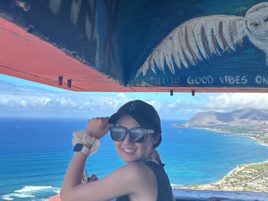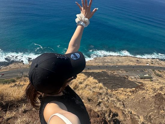 登り切った達成感と真っ青の海と空 今回のハワイ旅一の感動でした。汗だくで降りたらキンキンに冷えた水とタオルが貰えて嬉しかったです。