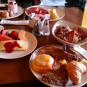 キャラクターと写真が撮れる朝食を日本から予約したら満席で取れなくて、諦めていました。でも、ガイドさんが当日予約で取れるかもしれないとアドバイスしてくださって、ダメもとで聞いたらOKでした!本当に感謝です。