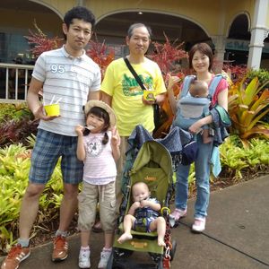 夫婦と5歳の娘、0歳の双子、義父母7人で参加しました。ベビーカーはバギーのみ持ち込み可能だったので、一台だけバギーを持ち込ませて頂いての参加でした。11時間という長時間でしたが、あっという間にツアーが終わってしまいました。日本語でのガイドで、車の中ではずっとハワイの案内を聞けたのと、マイクで車内のどこのいてもよく聞こえるのも良かったです。途中雨が降りましたが、大きな傘も貸してもらえました。もともと、土曜限定のKCCへ立ち寄るツアーを探して見つけたツアーでしたが、ワイケレやホールフードなど、レンタカーなしではなかなか手軽に行く事のできないスポットへ1日で全て回れる効率的なツアーだと思います。更に食事も、美味しいものをあちこちで食べて回ることが出来ました。今回のハワイ旅行で1番たのしみにしていたのですが、また次回も同じツアーか、同社の他のツアーに参加したいと思います。
