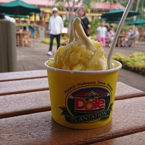ドールプランテーションでは、パイナップルアイスを家族でシェア。