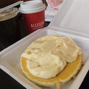 カイルアはバスが入れないのでビーチへは降りれませんでしたが、良く見渡せるポイントで車外へ降りて見ることができました。ブーツアンドキモズのパンケーキをテイクアウトして、ホールフーズでコーヒーと共に。二人で一つをシェアしました。とても美味しかったです!