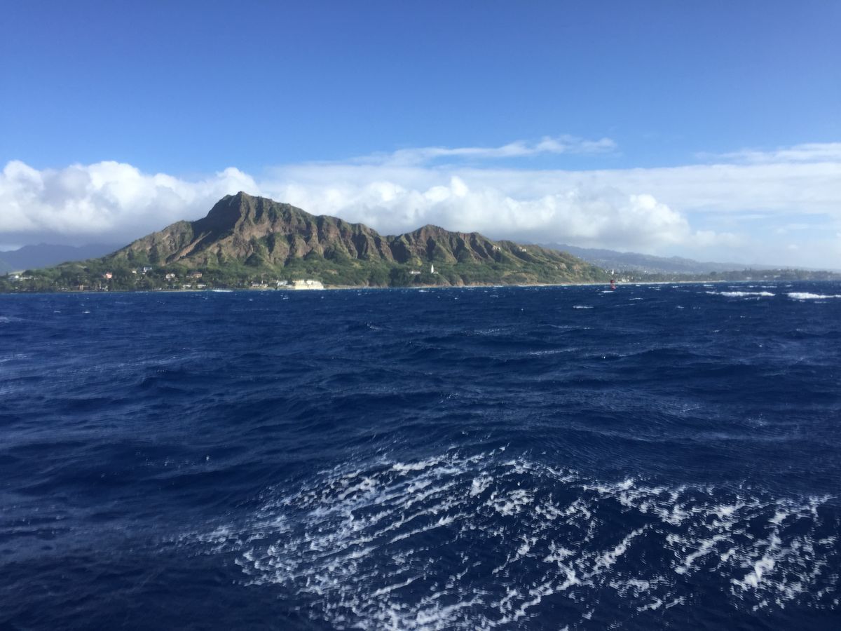 私たちが乗船した際は、ダイヤモンドヘッドの奥の火山?から煙がもくもく出ており、
