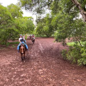 5歳、11歳、14歳の娘と私たち夫婦の5人で参加しました(^-^) 昨年クアロアも行きましたが、断然こちらの方がよかったです!幼稚園、小学生、中学生、みんなが楽しめます。馬もすごくお利口さんでした。5歳の娘の馬だけは、トレーナーさんが馬に乗りながら手綱をひいてくれましたが、他はみんな自分で馬をコントロールしてました。トレーナーさんも優しくて、フレンドリー( ◠‿◠ ) 森を抜けていく道も気持ちよく、また行きたいです!