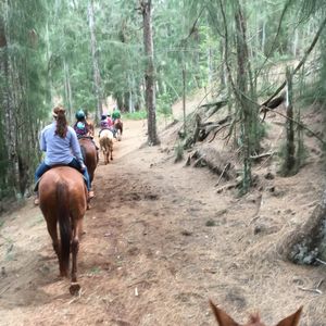 We are delighted that you chose to enjoy your horseback riding in Hawaii at our Happy Trails ranch. As you mentioned, with a bit of advance planning and use of GPS it is a nice drive from the city to the north shore countryside. We have 4 wild peacocks that wander the property, and they are quite funny as they like to look at themselves in shiny objects. Shortly after you came riding we placed mirrors around the parking lot for them to gaze into. Our trails meander over hills, valleys and wide open green acres so it provides a more interesting horseback ride as you experienced. We appreciate your kind review, photo and recommendation for others to come horseback riding with us. Mahalo and Happy Trails to you!
