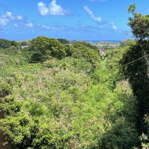 8本のジップライン、2回のラペリング、3つのスカイブリッジがあります。このコースにはオアフで最も長いジップラインがあり、そのうちの1本は約0.8キロメートルの長さです。ジップライン体験中はずっと海の景色を楽しめてとても良かったです。コースの各所には水のステーションがありました。私たちは午後のジップラインを体験しましたが、日焼け止めをたっぷり塗っておいて本当に良かったです!コースを進むにつれて汗をかく準備をしてください。いくつかのジップラインプラットフォームには階段があります。全体的に素晴らしい海の景色、フレンドリーなスタッフ、そしてとても楽しい時間を過ごしました!