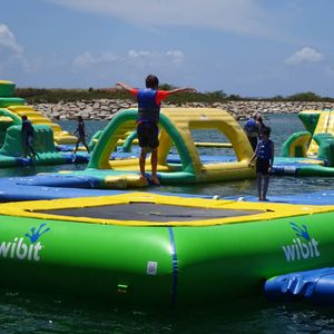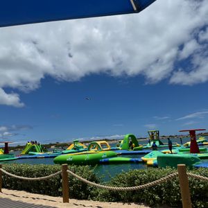 以前沖縄の万座ビーチで水上アスレチックをやりましたが、WaiKaiの方がアスレチックが広く、またスリリングなものが多かったです。特に巨大滑り台は大人気でした。