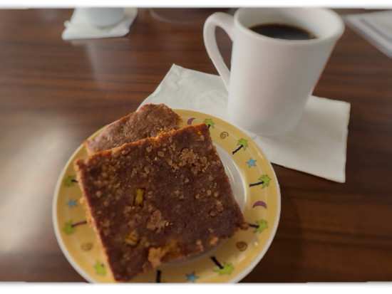 バナナブレッドがとても美味しかったです!紅茶、コーヒー、水はフリーで、アルコール・ジュースは有料です。
