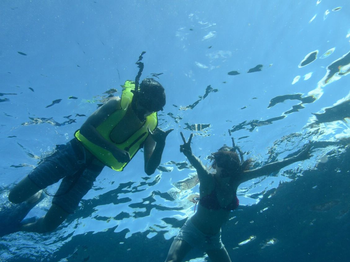 綺麗な海で透き通っているので、イルカ先生が泳いでいくのを自分が泳いでいる真下で見ることができました!!
