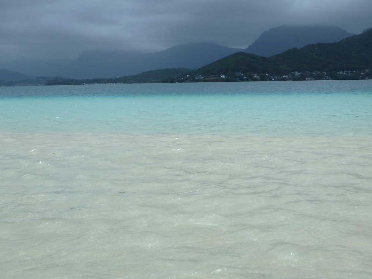 ハワイで一度は行ってみたいであろうサンドバー。当日の天気は曇りで、3月でしたが、やや肌寒かったです。いったん水に浸かれば慣れますが、また陸に上がると結構冷えました。
