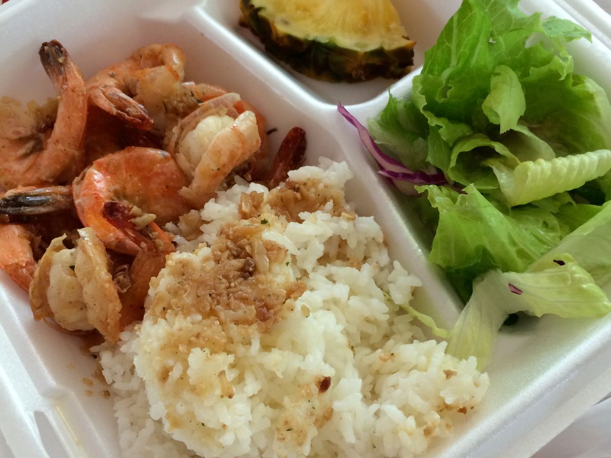 ドール・プランテーションでは、立ち寄ったわずか15分の間に、評判のパイナップル・アイスを食べてお土産(ここのショップは超充実してます)を買い、トイレに行って戻るという荒技。ハレイワ・タウンには降りず、ガーリック・シュリンプはテイクアウトして「ハッピー・トレイル」に到着してから食べました。10分で。