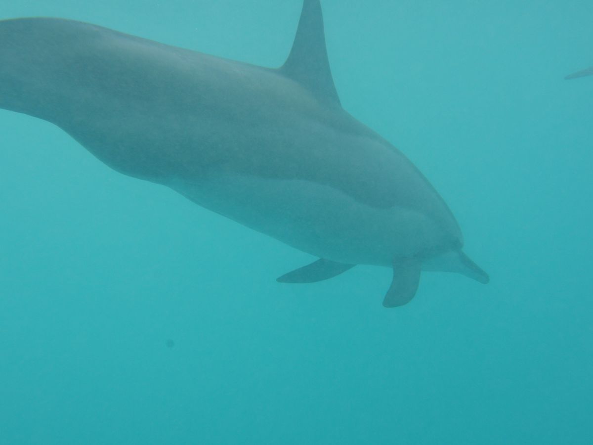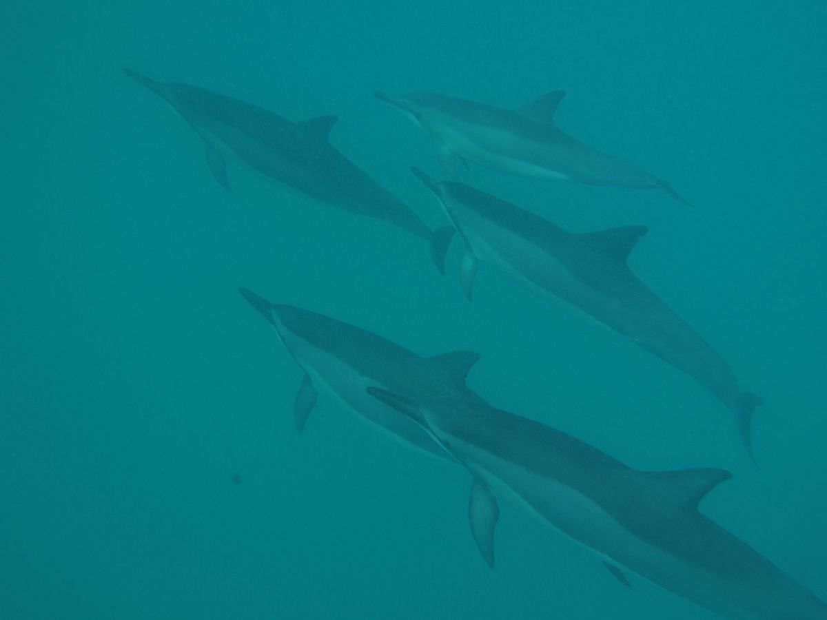 海に入ったら自分の下をたくさんイルカが泳ぐ姿が見えます。