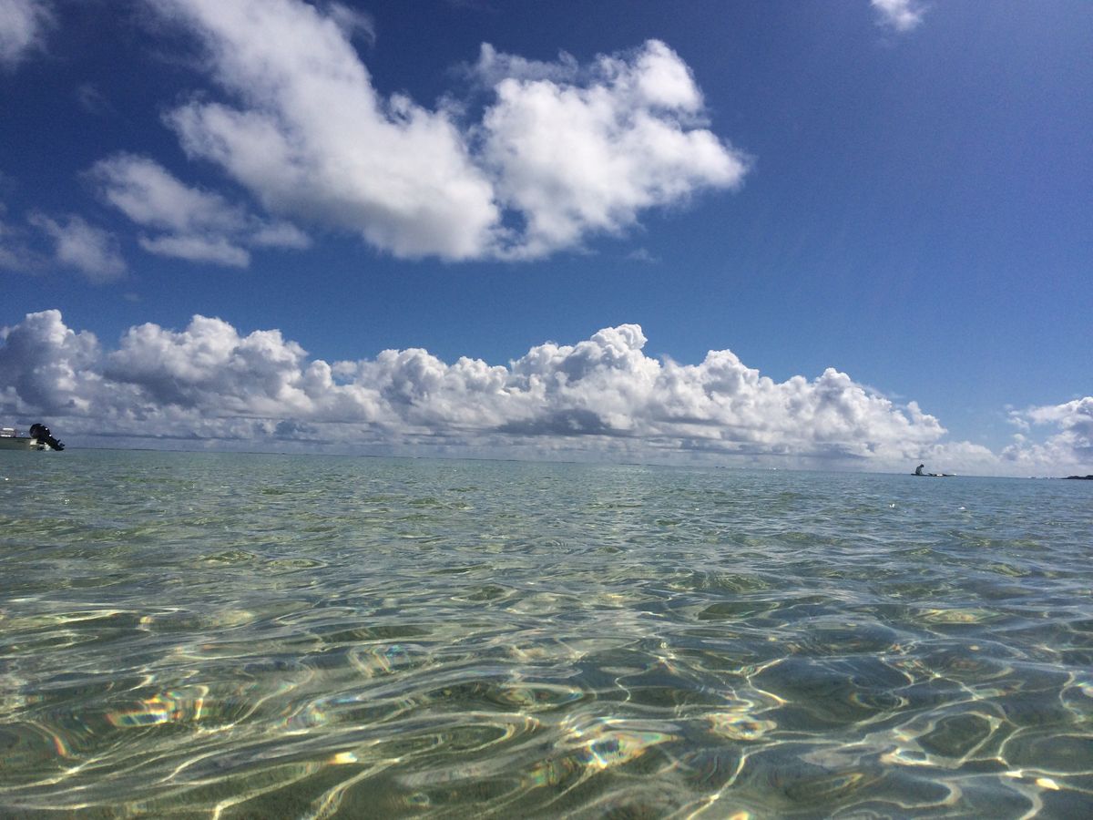 海亀ウォッチングの後はいよいよサンドバーへ。この日は潮が満ちていてサンドバーが陸になっている状態は見れませんでした(サンドバーは陸が現れる日と時間が決まっていて、なかなかお目にかかれません。そんな日は週に2.3日らしいです)でも海の真ん中に足のスネくらいまでの浅瀬があること自体凄く不思議な感じがして、景色も綺麗で感動しました!